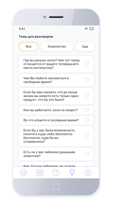Приложение dio содержит в себе вопросы и темы для поддержания разговора.